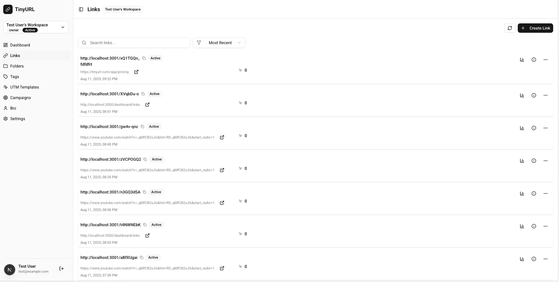 Shorten links, track clicks, share files, create in-bio pages, generate deeplinks, and share branded QR codes — all with real-time analytics.